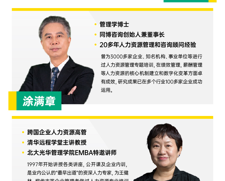 1997年开始讲授各类讲座,公开课及企业内训,是业内公认的”最早出道”的资深人力专家,为王健林,柳传志等企业管理者做过人力资源专业培训至今学员超20万人次,内训企业超千家。