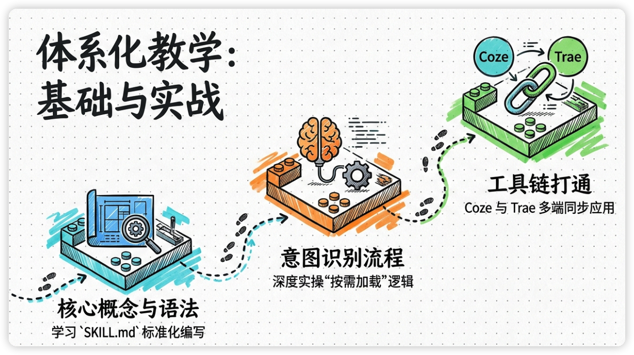 本课程将带你完成从“AI使用者”到“AI技能创造者”的认知与能力跃迁。你将系统学习Agent Skills的核心原理,并通过实战掌握调用热点新闻、创建软件设计大师、PPT大师等Skills。更关键的是,你将学会在Trae等平台创建代码审核等专业Skills,并掌握元数据设计、自由度描述等高级技巧,最终能为自己最耗时的工作量身打造专属AI自动化流程。