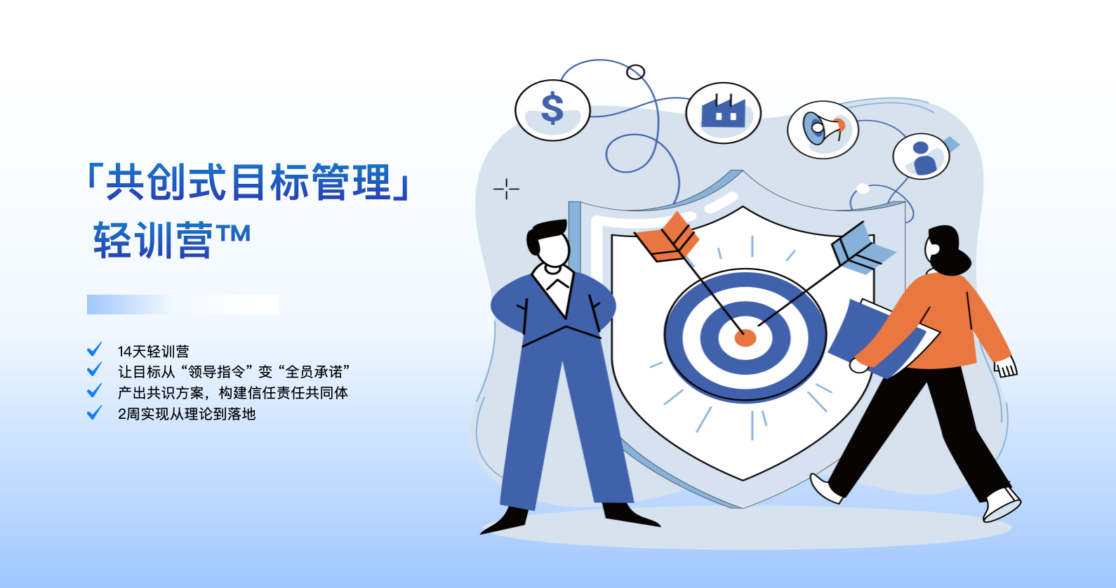 「共创式目标管理」针对企业目标难对齐、执行被动、成果难沉淀痛点,融合德鲁克管理哲学、ME-WE-ALL 共创工具和 OKR 方法论,打造 “共识构建→成果落地→长期赋能” 全闭环,将团队目标从 “领导指令” 变为 “全员承诺”,训后可落地,稳提目标达成率。
