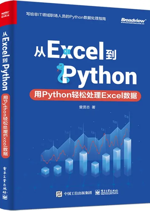 《从Excel到Python:用Python轻松处理Excel数据》是由曾贤志编著、电子工业出版社于2021年1月出版的职场办公工具类图书,主要面向非IT领域职场办公人员 [1-3]    [5]  。全书以Python基础语法、数据结构及openpyxl库为核心,围绕Excel自动化处理需求展开,通过12个综合案例涵盖数据清洗、多表合并等场景 [1]  。书中采用“提出要解决的问题→