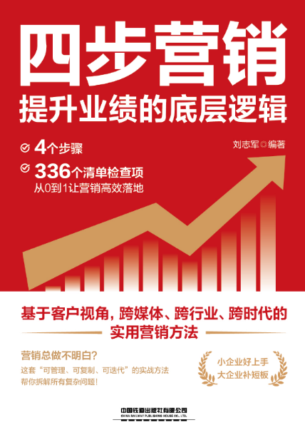 刘志军,网络营销分析师,用户行为轨迹分析法发明人,四步营销理论模型创始人。2007年撰写的《搜索引擎优化(SEO)从入门到精通》是国内较早的SEO教程,全网下载量超过30万次,帮助很多人学会了SEO,并为MSN、一大把、达内等网站做优化培训。从2008年开始研究用户体验,开发的用户行为轨迹系统,获得两项用户体验发明专利,并为金山词霸、凤凰汽车、新意互动等公司做数据分析。《四步营销》是在总结过去18年丰富经验的基础上完成的,也将帮助更多人掌握系统化营销思维。