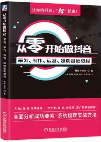 2019年,机械工业出版社出版。本书深入地剖析了抖音的特征以及做好抖音的内在诀窍,详细介绍了快速上手、定位、账号运营、拍摄制作、高效涨粉、搭建传播矩阵、变现、打造企业蓝V等方法。本书在每章的开篇设计了阅读重点提示,在每章的结尾设计了抖音行动清单,便于读者了解做抖音的重点、难点,以及自己在实践时该如何行动,可作为个人或企业进行抖音内容创作和运营的战术指南。