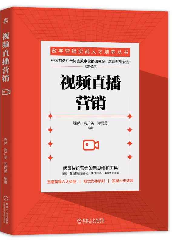 2022年,机械工业出版社。本书系统解析视频直播营销全流程操作,包含需求梳理、方案策划、执行统筹、现场准备与执行、后续宣传及复盘环节,并提出五大驱动因素(5G技术、平台发展、智能手机普及、数字营销策略演变、疫情推动)与四大核心功能(引流、认知构建、实时互动、交易转化) 。案例部分整合乐播传媒1000+场直播实践及第十二届虎啸奖获奖案例,编写团队由新视界研究院、南京大学中德数字营销实验室等机构专家。